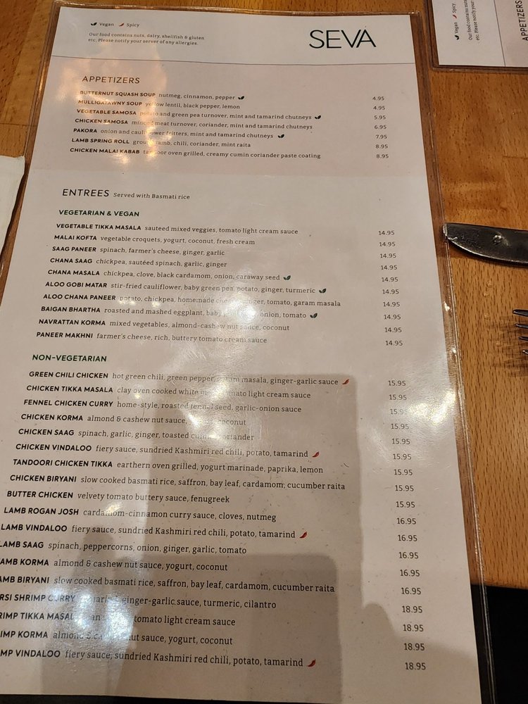 Seva Indian Cuisine, located in Astoria, NY, offers a wide range of vegetarian, pescatarian, and vegan options in a casual setting. The menu includes unique dishes like coconut naan and butternut squash soup, along with classic favorites like Lamb Vindaloo and Chicken Tikka Masala. Customers praise the restaurant for its attentive service, flavorful food, and great value, especially the lunch special at $15. Some reviewers mention that the quality of the food has declined slightly over the years but still find the overall experience enjoyable. With options for outdoor seating, delivery, and catering, Seva Indian Cuisine caters to a diverse range of preferences and dietary needs. Give their delicious dishes a try and experience the flavors of India in the heart of Astoria.